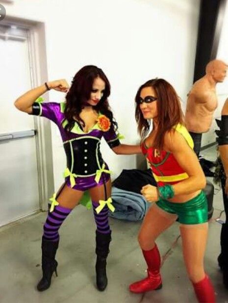 Ambas representan a la nueva generación de la división de mujeres de la WWE y también son muy fans de los comics. En este ejemplo es posible apreciarlas portando estos disfraces de los personajes de DC.