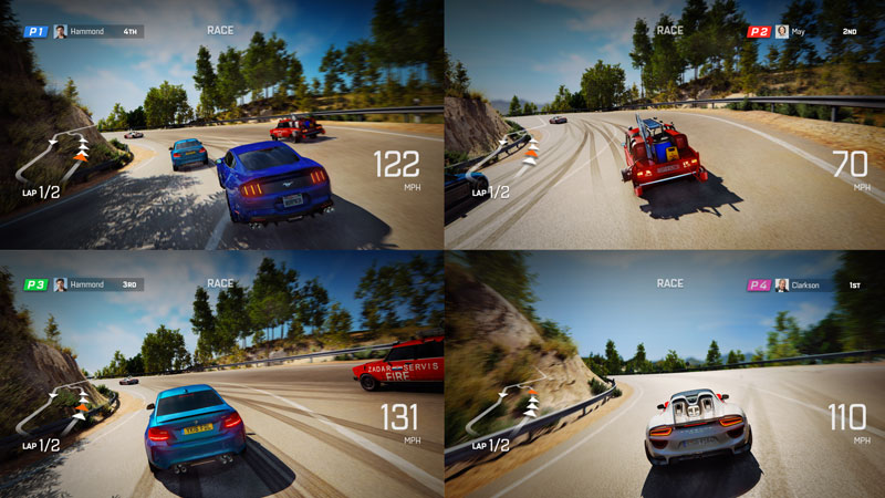 The Grand Tour Game tendrá un modo de cuatro jugadores a pantalla dividida, por lo que los jugadores podrán correr unos contra otros, además de lanzarse insultos.