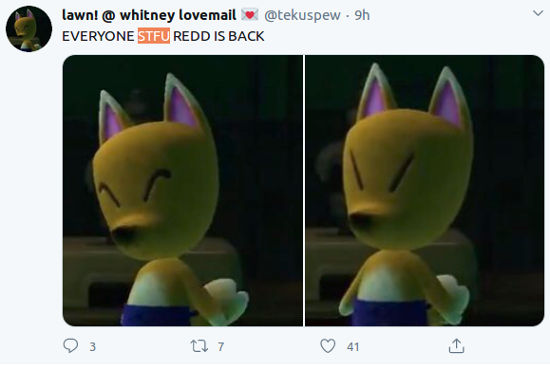 @tekuspew comentó acerca de este evento de Animal Crossing: New Horizons ‘todos los STFU de Redd están de vuelta’.