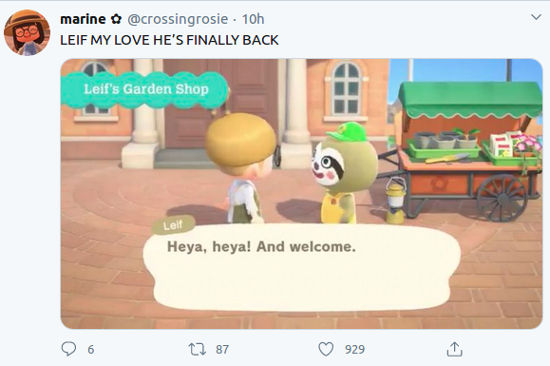 @acnhelen comentó un error que cometió, diciendo ‘así que hice una rampa para llegar a la playa de Redd, y Lloid me arrastró, ahora estoy atascada’. @crossingrosie, por su lado, declaró alegremente ‘LEIF, MI AMOR FINALMENTE ESTÁ DE VUELTA’.