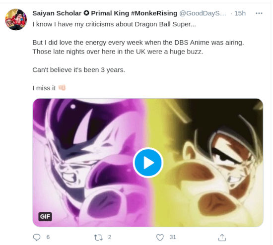 @GoodDayScholars resaltó más, al decir que tenía sus críticas hacia el anime. Sin embargo, añadió ‘pero me encantaba la energía cada semana cuando se emitía el anime de DBS’. Eso es algo que muchos echan de menos.