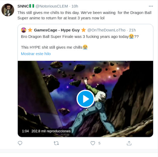 @NotoriousCLEM terminó diciendo ‘hasta el día de hoy aún me da escalofríos. Hemos estado esperando el regreso del anime de DBS durante al menos tres años, ja, ja, ja’.