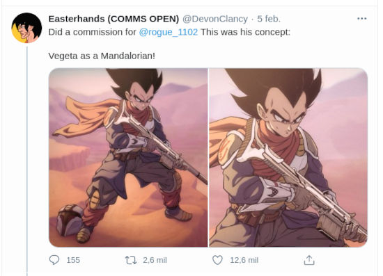 Como el caso que les traemos ahora. Se trata del trabajo de @DevonClancy, que debido a una comisión realizó un diseño que reúne a Dragon Ball Z y The Mandalorian.