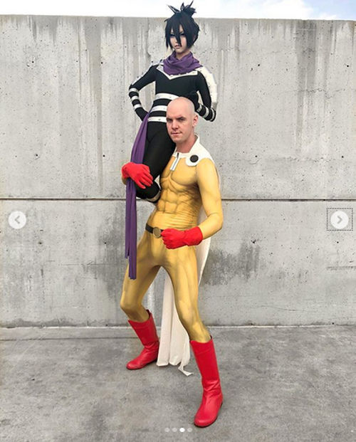 La cosplayer que interpreta al villano se ve que es bastante ligera, y al héroe, que tiene la suficiente fuerza para levantarla. Los trajes se ven acordes a su apariencia en One-Punch Man. Es un curioso cosplay doble de estos personajes.