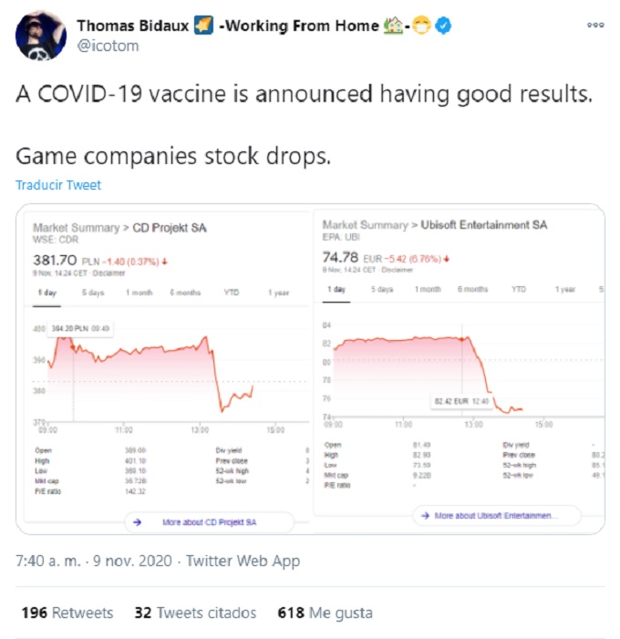 Curiosamente, al confirmarse esta información las acciones de CD Projekt Red y Ubisoft disminuyeron su valor en el mercado.