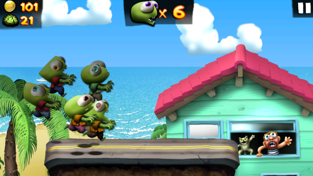Esto es exactamente de lo que se trata este juego de móviles. En Zombie Tsunami comenzaremos controlando un único zombie que se va moviendo a través de un escenario lineal, nuestro objetivo será el de ir atrapando a las personas que nos encontremos en el camino para convertirlos en zombies y súmate a nuestras filas.